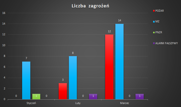 W miesiącu marcu byliśmy dysponowani do 27 zdarzeń. Natomiast w pierwszym kwartale 2021 roku braliśmy udział w 47 interwencjach.